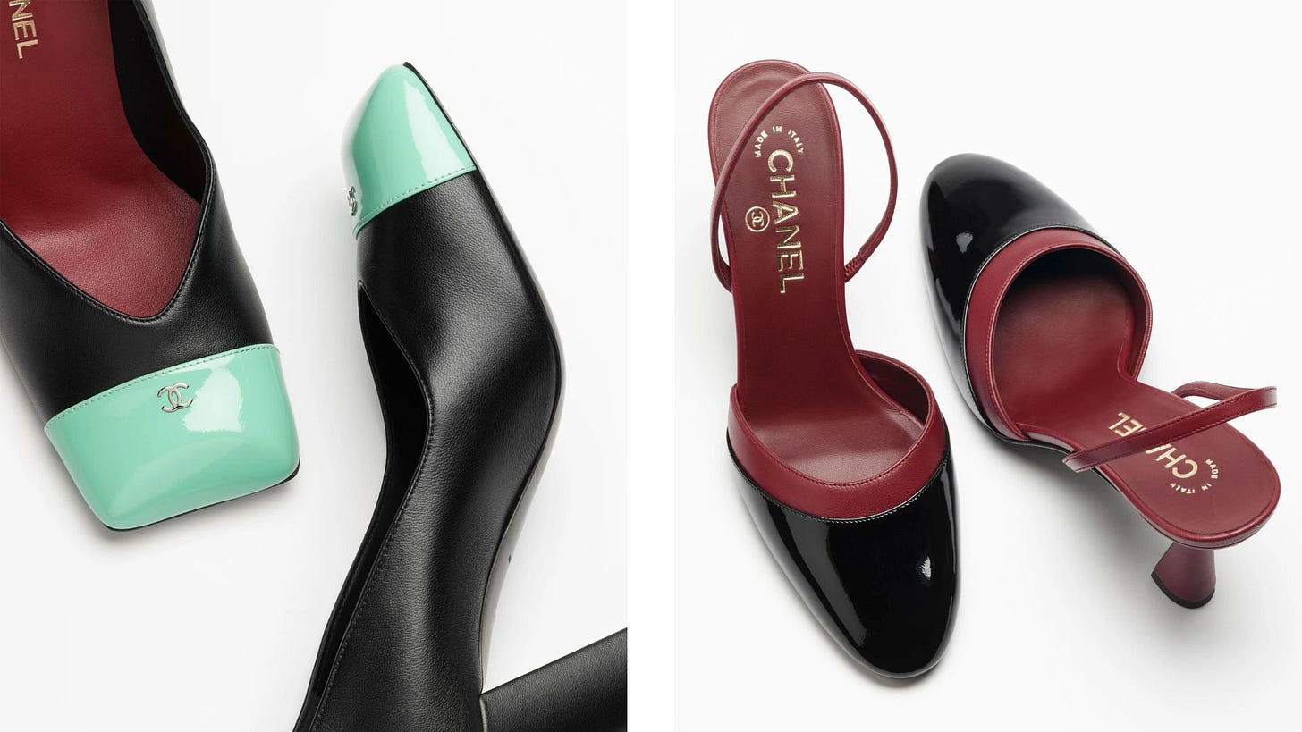 According to The New York Times’ chief fashion critic, Vanessa Friedman, these $1,260/£950 black pumps with mint green toe caps and these $1,330/£1,000 burgundy slingbacks caused a near riot.